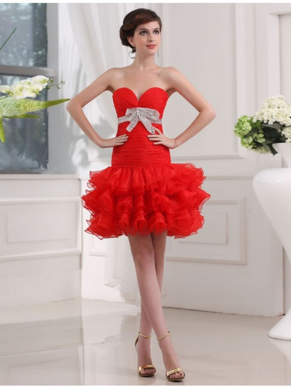 A-Line/Princess Beading Sweetheart Sleeveless Short Organza Cocktail Dresses
