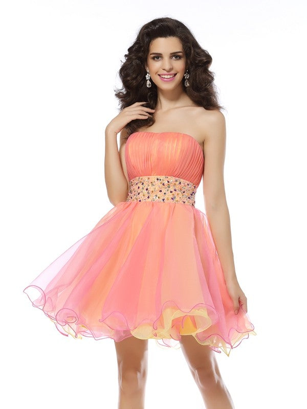 A-Line/Princess Strapless Beading Sleeveless Short Organza Cocktail Dresses