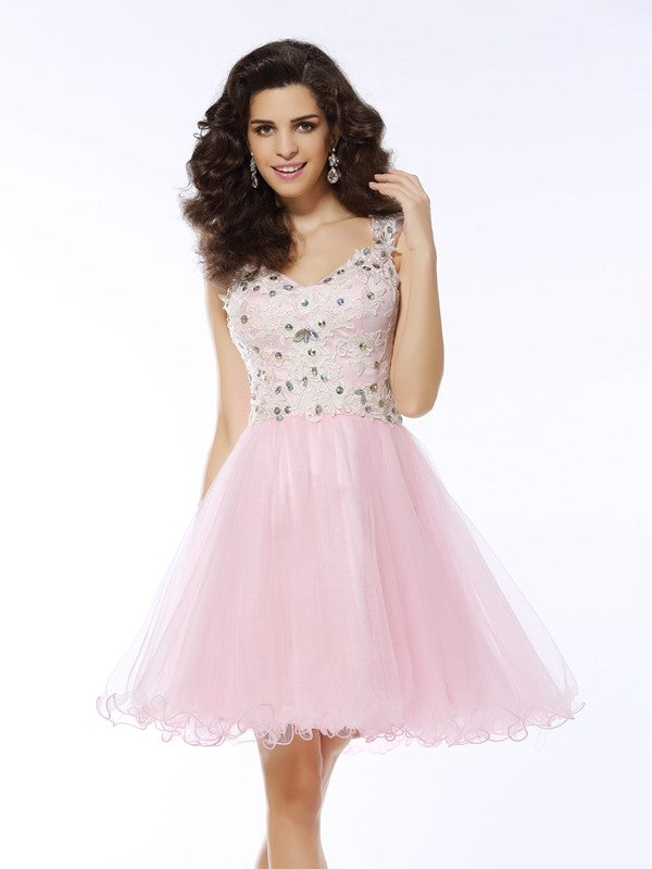 A-Line/Princess Sweetheart Applique Sleeveless Short Satin Cocktail Dresses