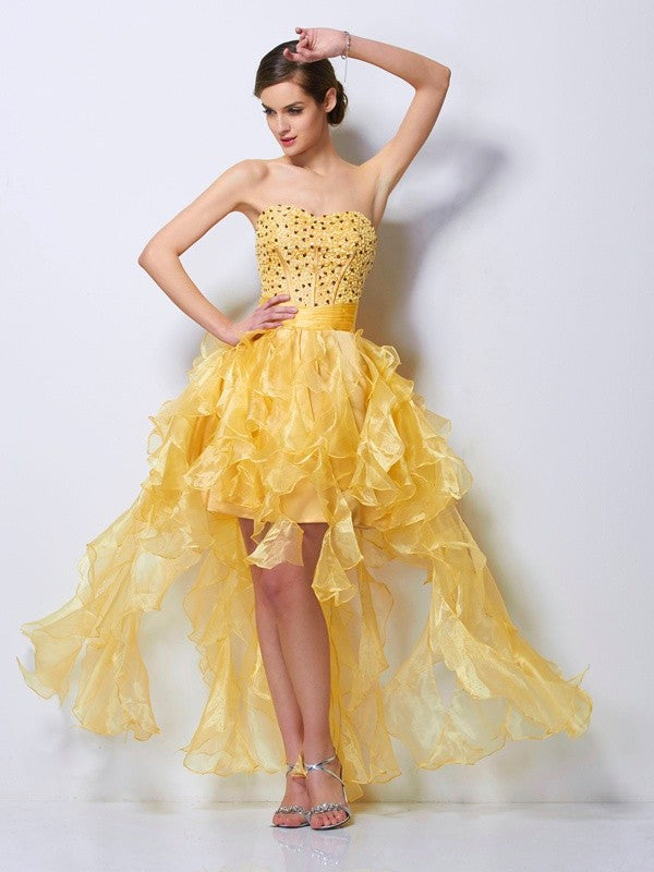 A-Line/Princess Sweetheart Sleeveless Beading High Low Tulle Homecoming Dresses