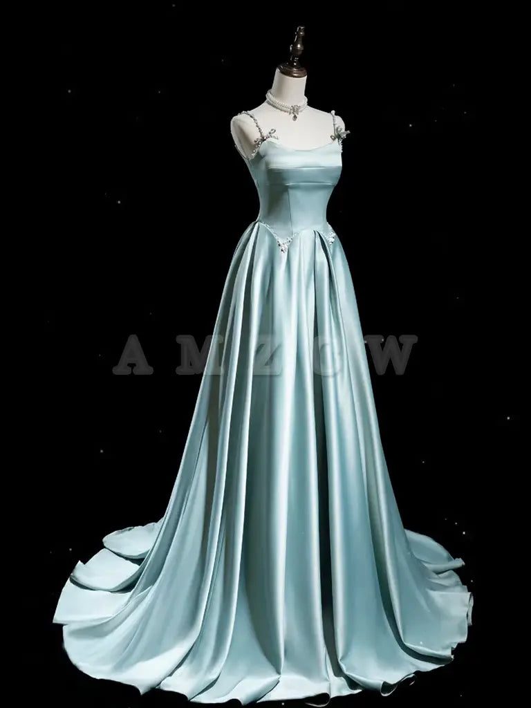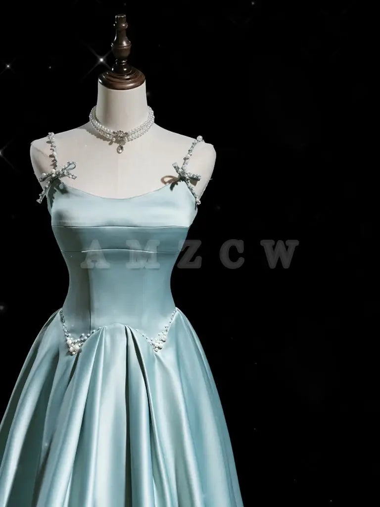 Amzcw A-Line Blue Satin Long Prom Dress Blue Long Formal Dress prom dresses shops