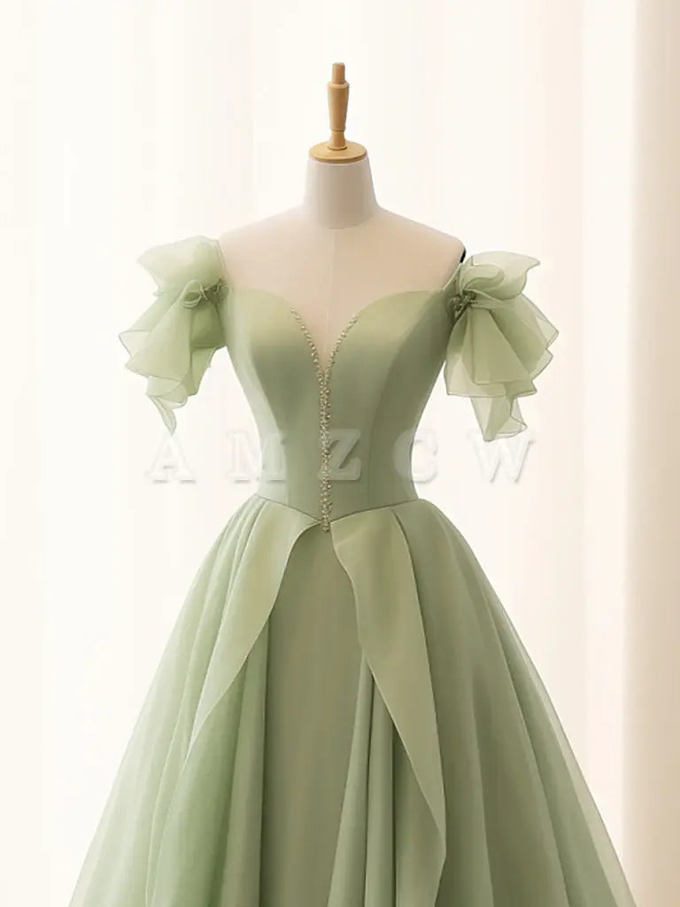 Amzcw A-Line Green Tulle Long Prom Dress Green Tulle Long Formal Dress prom dress in store
