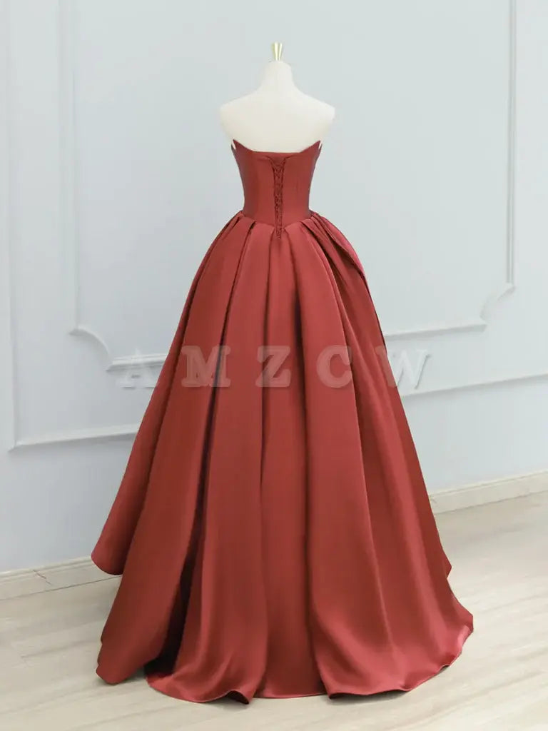 Amzcw A-Line Satin Burgundy Long Prom Dress Burgundy Long Formal Dress prom dresses shops