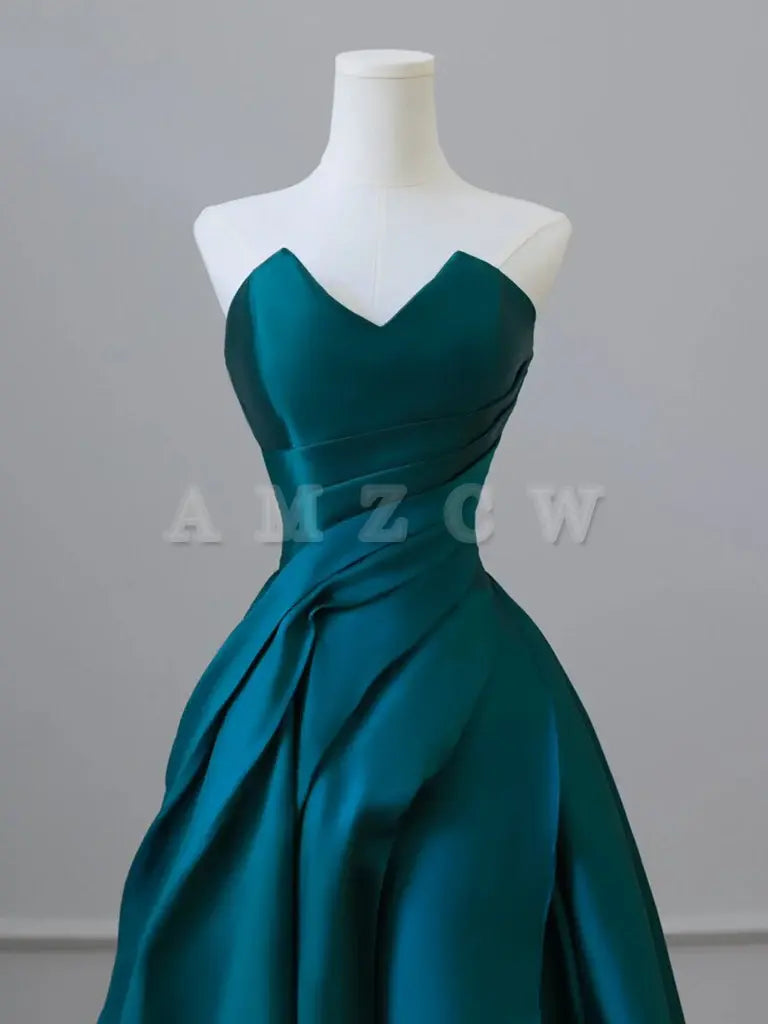 Amzcw A-Line Satin Green Long Prom Dress Green Satin Long Formal Dress prom dresses shops