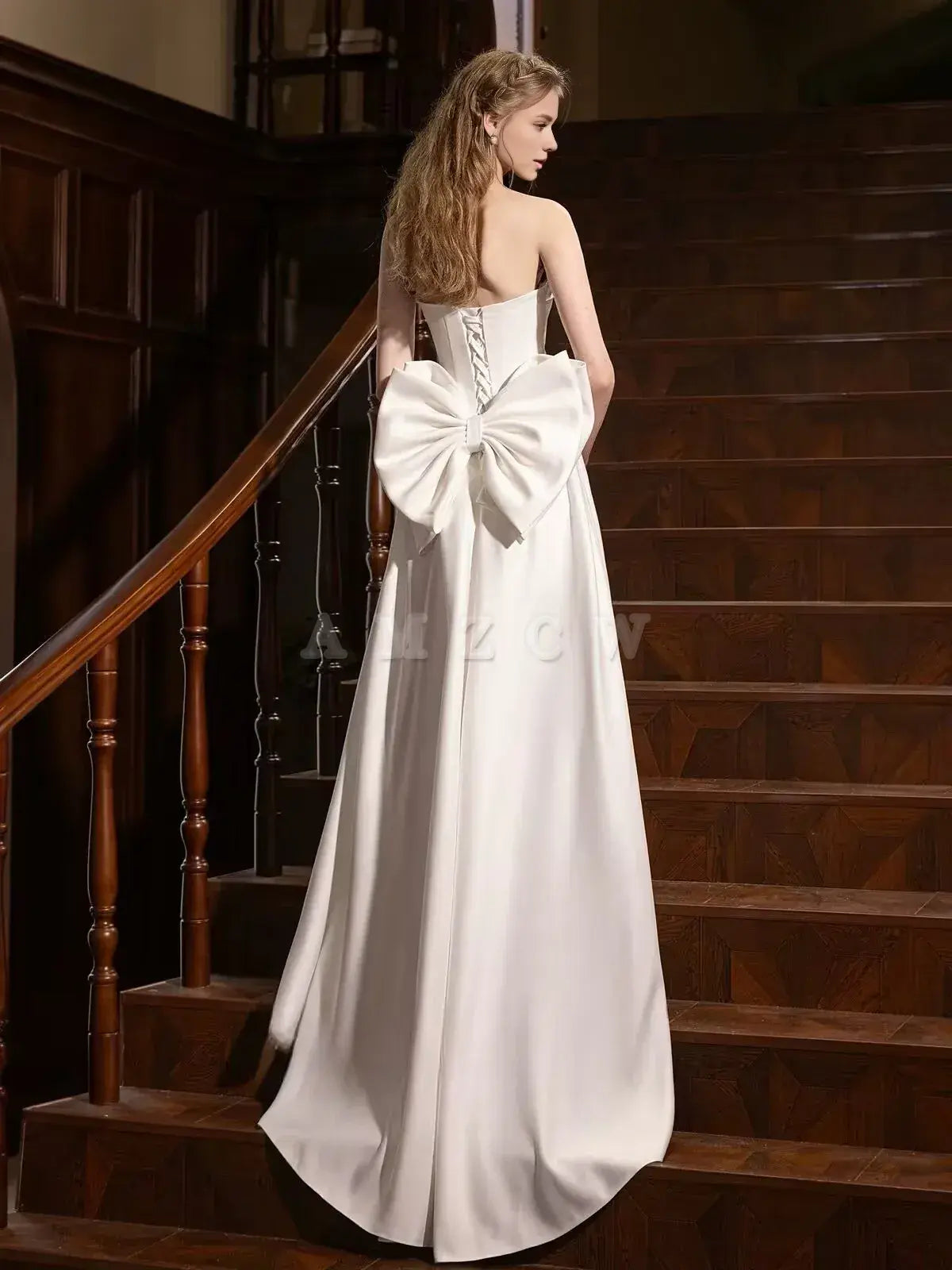 Amzcw A-Line Satin White Long Prom Dress White Long Formal Dress prom dress in store