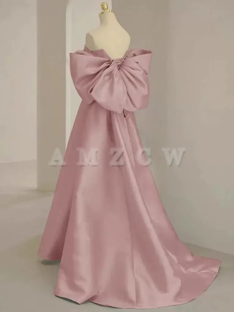 Amzcw A-Line Sweetheart Neck Satin Pink Long Prom Dress Pink Long Formal Dress prom dress in store