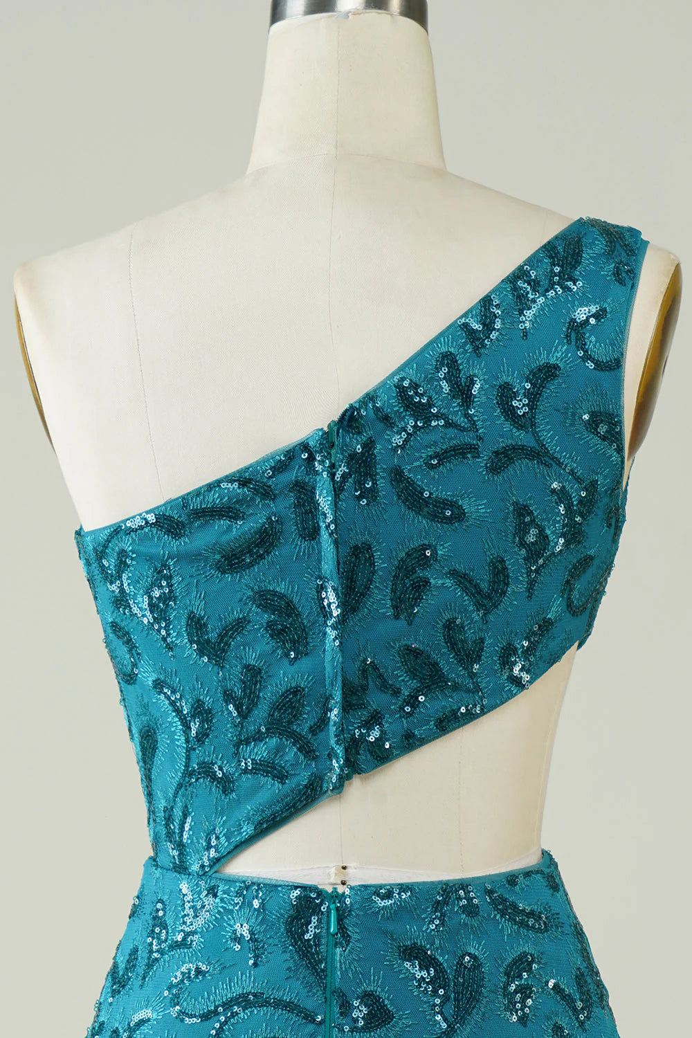 Amzcw Blue Glitter Tight Homecoming Dress with Hollow-out
