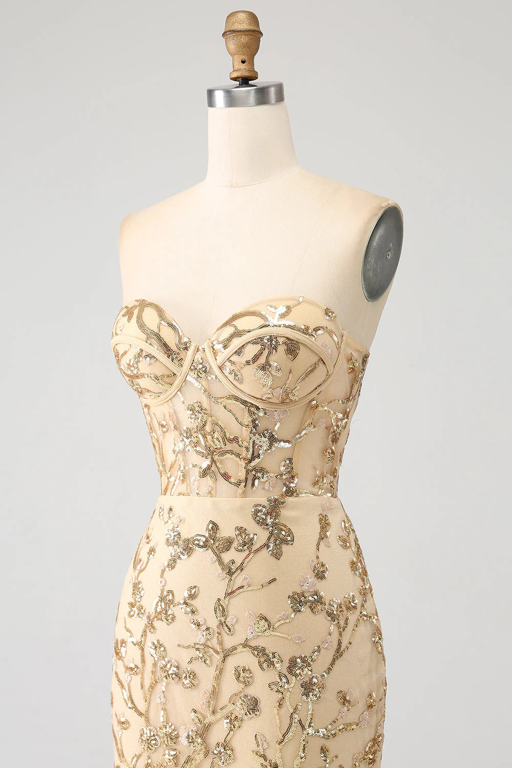 Amzcw Champagne Mermaid Strapless Sparkly Sequins Corset Prom Dress prom dresses shops