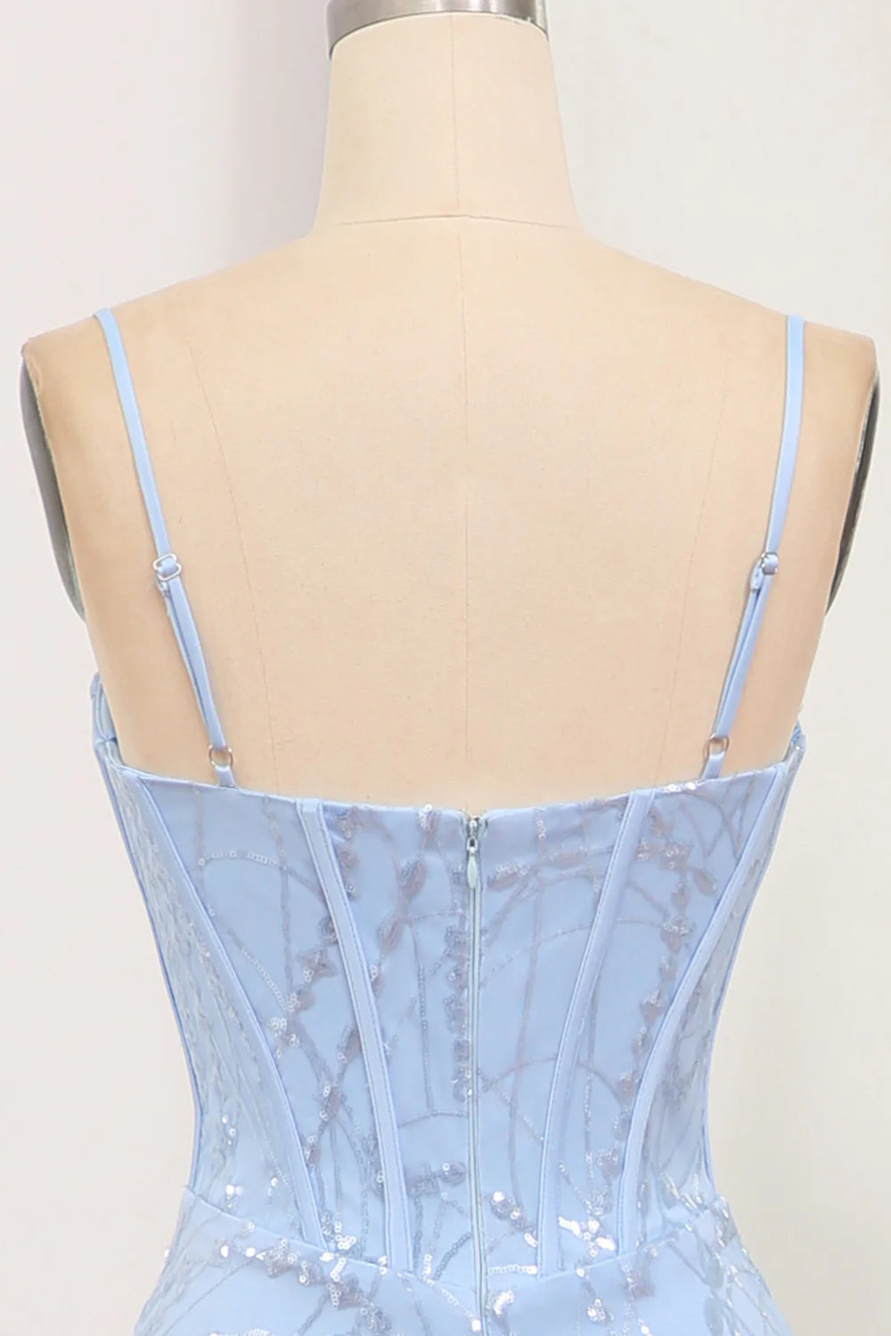 Amzcw Glitter Light Blue Mermaid Long Prom Dress With Sequined Appliques prom dresses with long sleeves