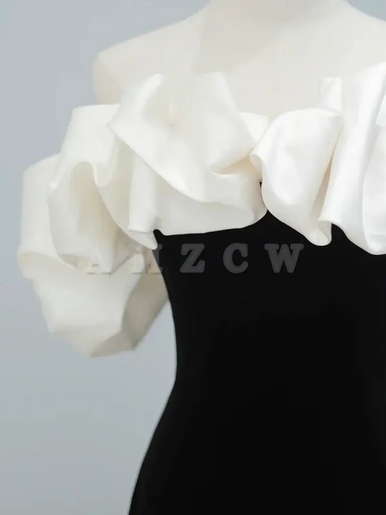 Amzcw Mermaid Off Shoulder Velvet Black Long Prom Dress Black Formal Dress prom dress in store