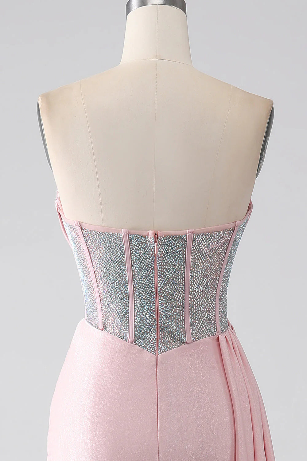 Amzcw Mermaid Strapless Beaded Pleated Long Pink Prom Dress With High Slit prom dresses shops