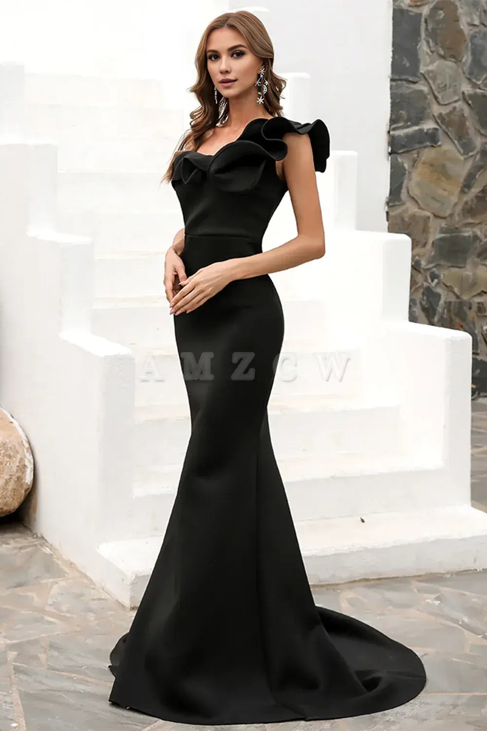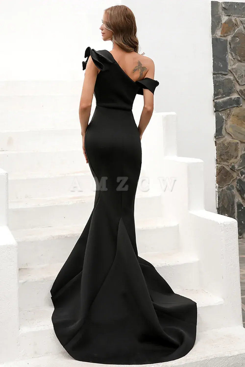 Amzcw One Shoulder Mermaid Black Prom Dress gowns evening dresses prom dresses shops