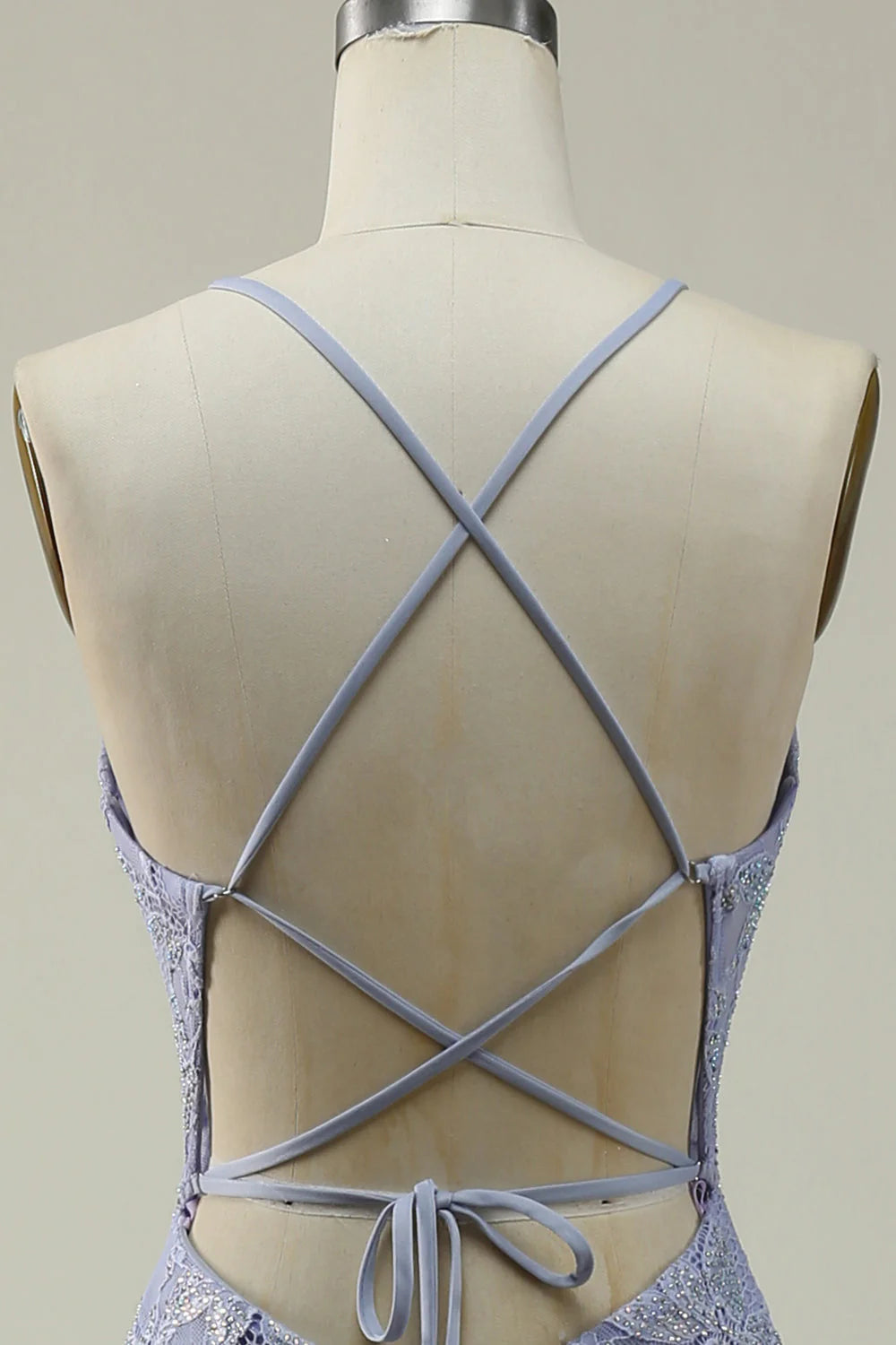 Amzcw Purple Mermaid Halter Long Lace Prom Dress with Slit prom dresses with long sleeves