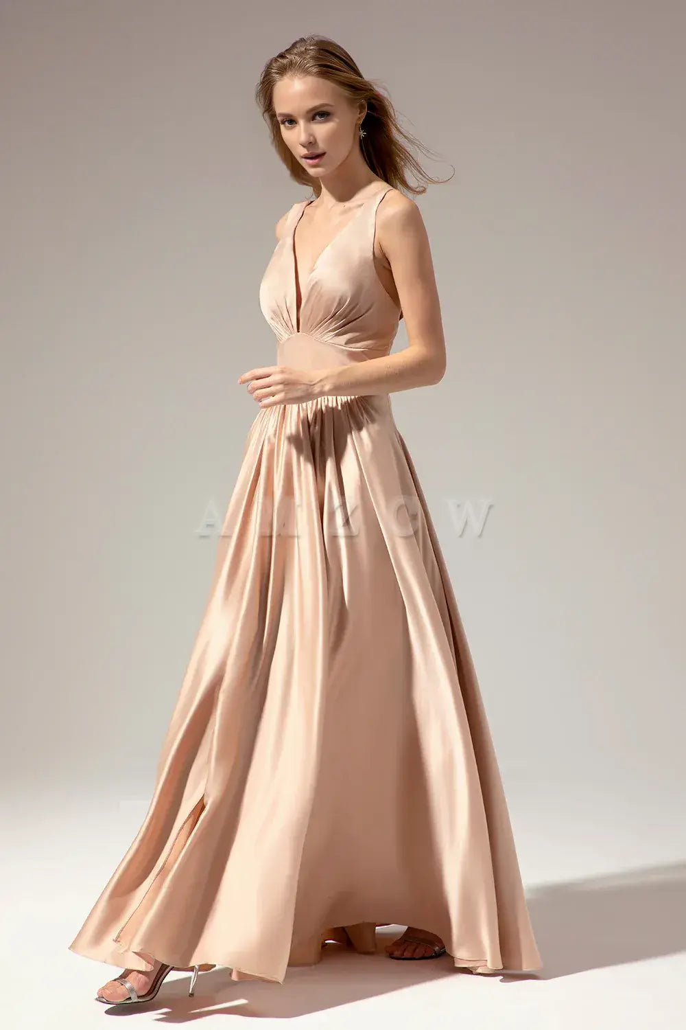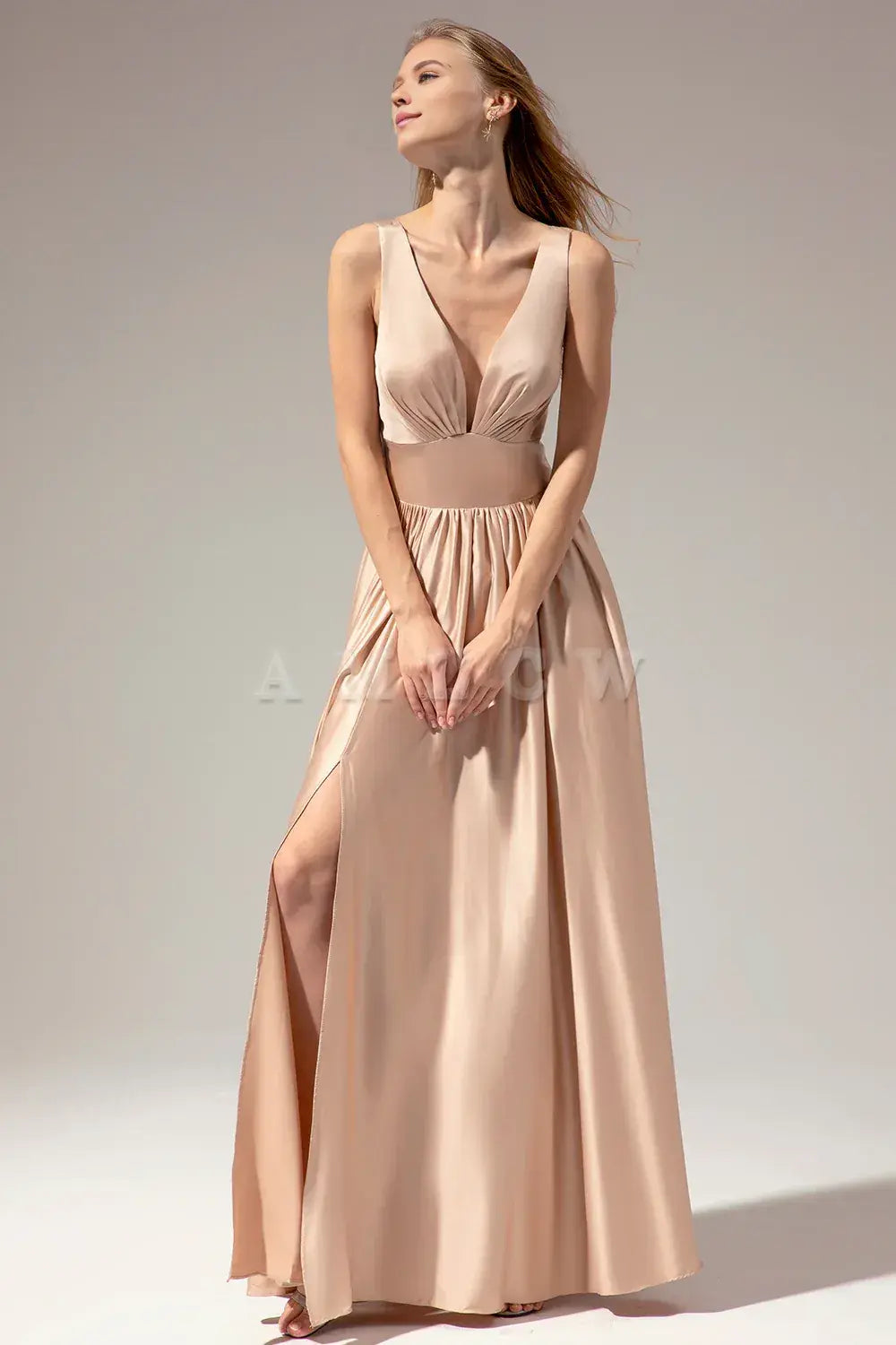 Amzcw Satin Long Prom Party Dress With Slit gowns evening dresses dressesgowns evening dresses