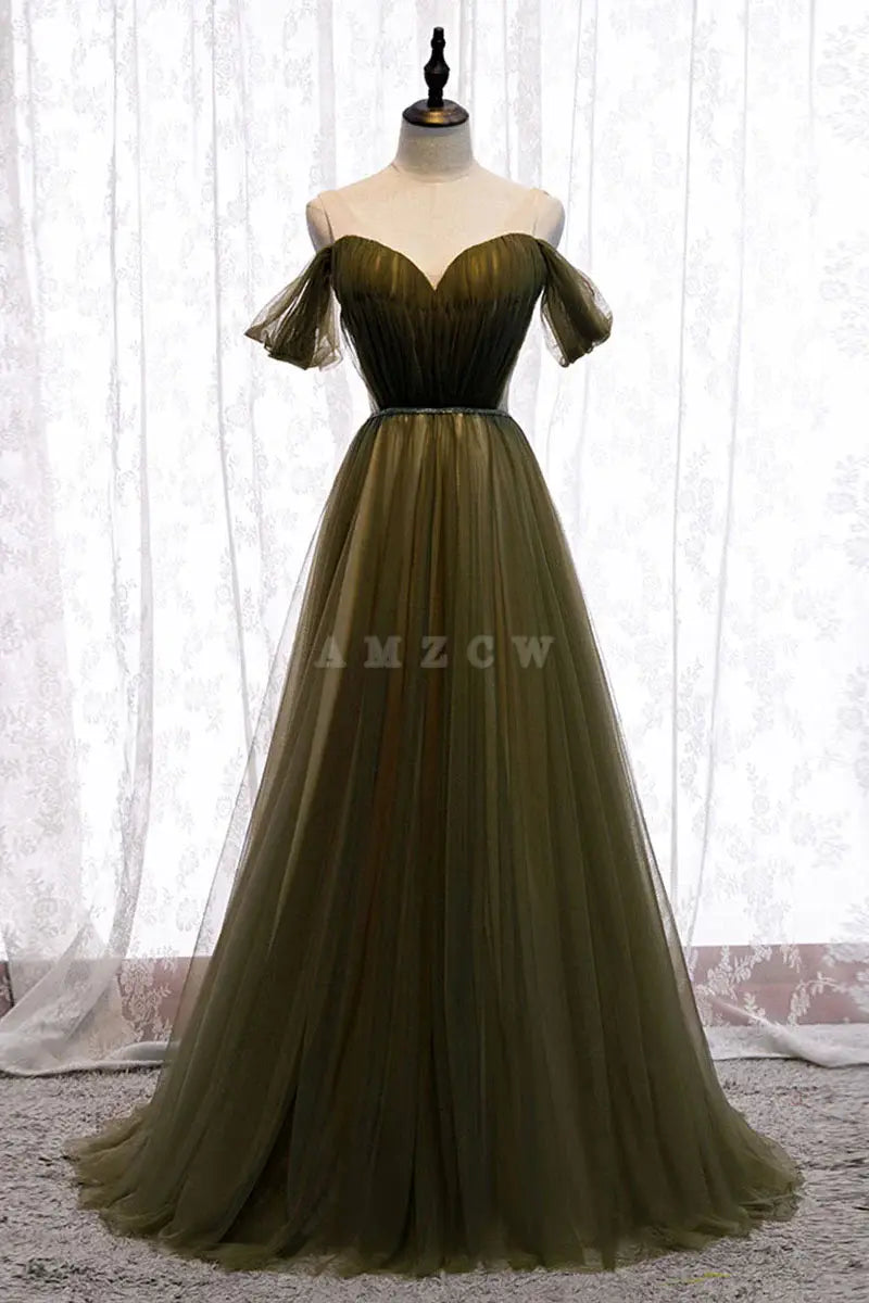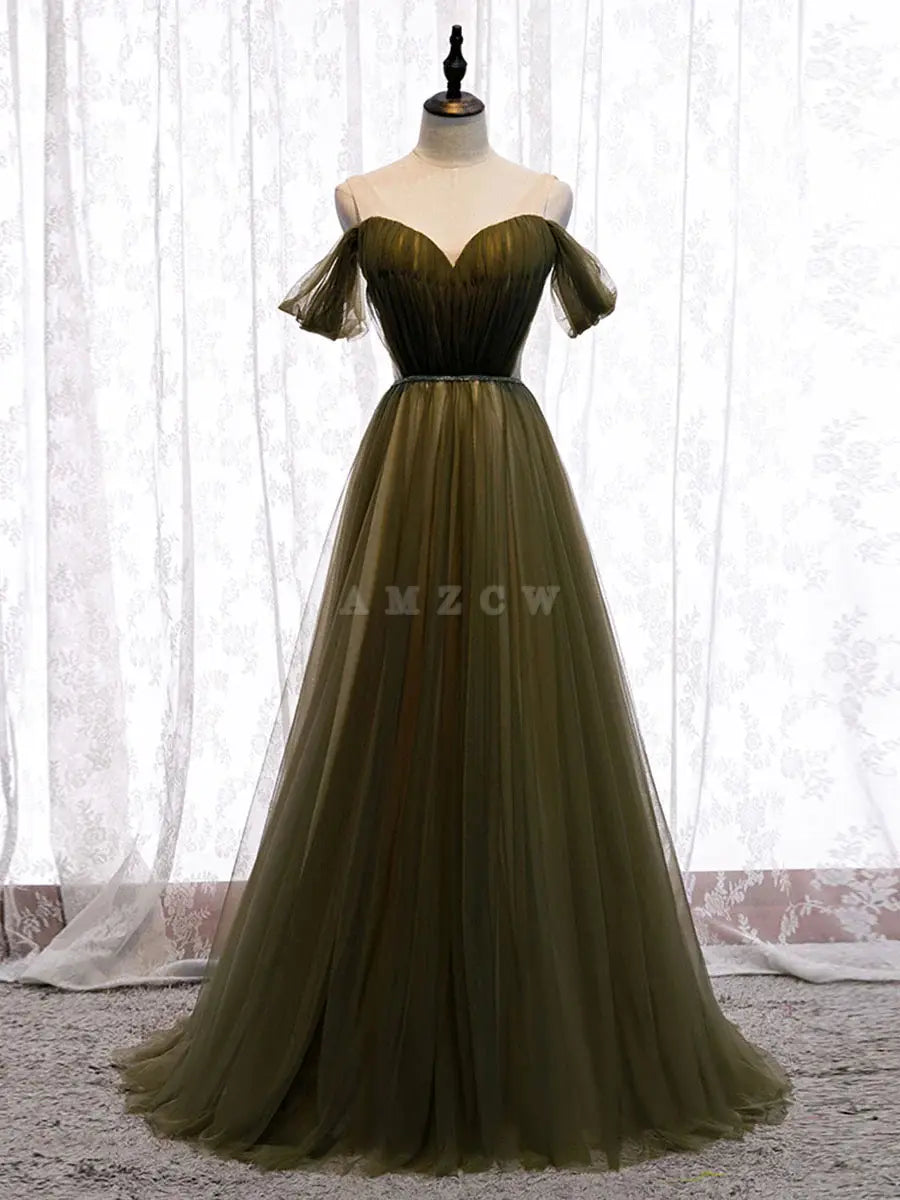 Amzcw Simple green tulle long prom dress green tulle evening dress formal wear dresses formal wear dresses