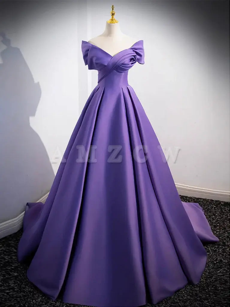 Amzcw Simple Off Shoulder Satin Purple Long Prom Dress Purple Long Evening Dress prom dresses shops
