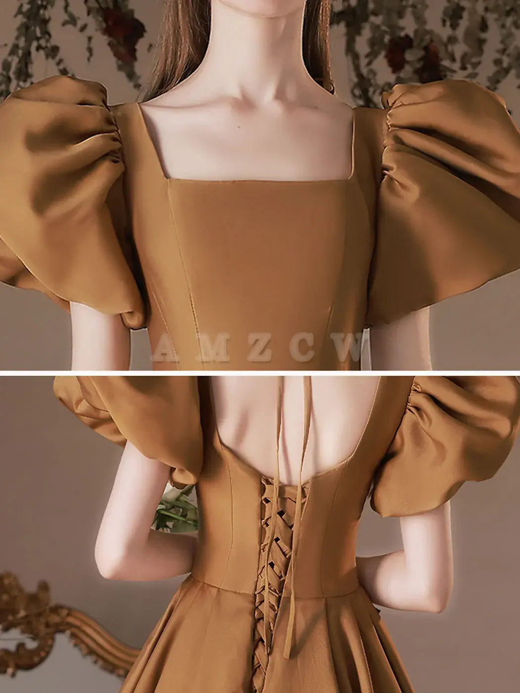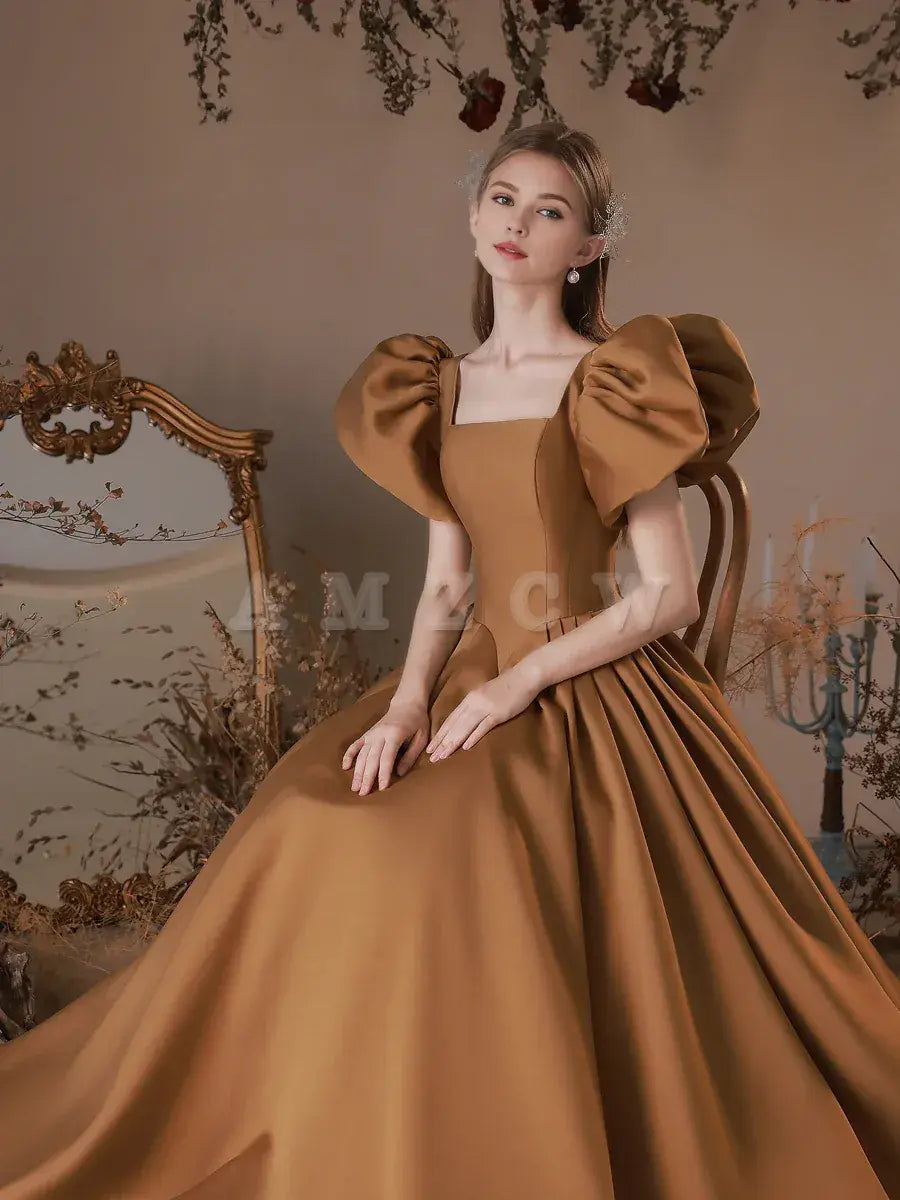 Amzcw Simple Square Neckline Satin Long Prom Dress Satin Formal Evening Dress prom dress in store