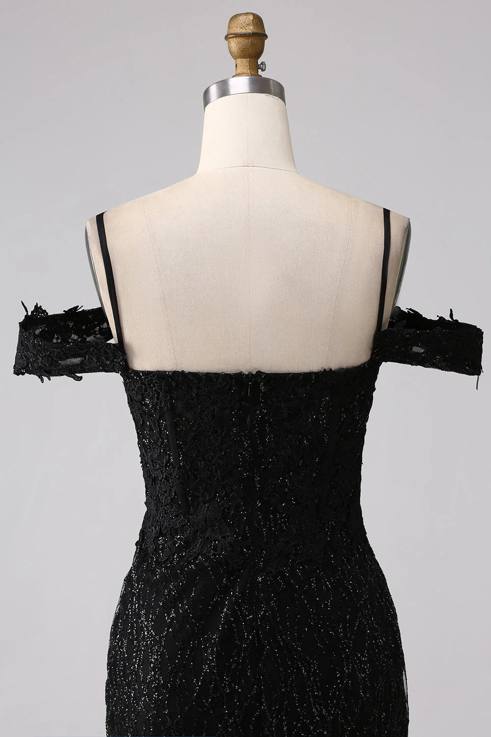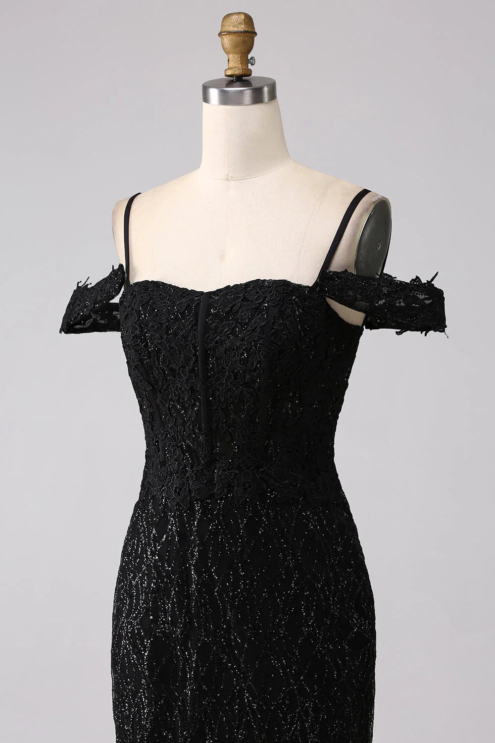 Amzcw Sparkly Black Mermaid Cold Shoulder Long Prom Dress with Slit prom dresses shops