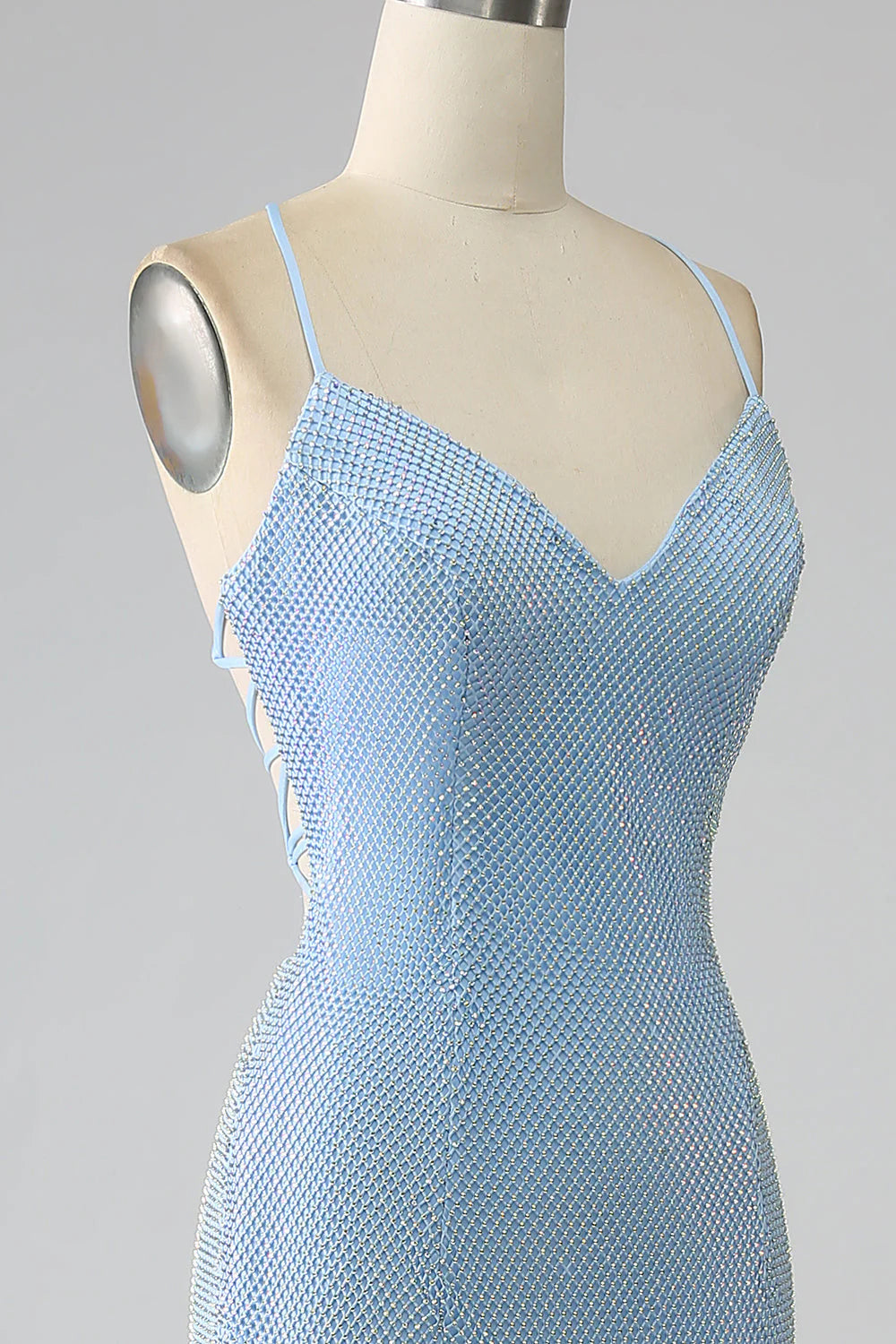 Amzcw Sparkly Blue Mermaid Long Beaded Prom Dress with Slit prom dresses shops