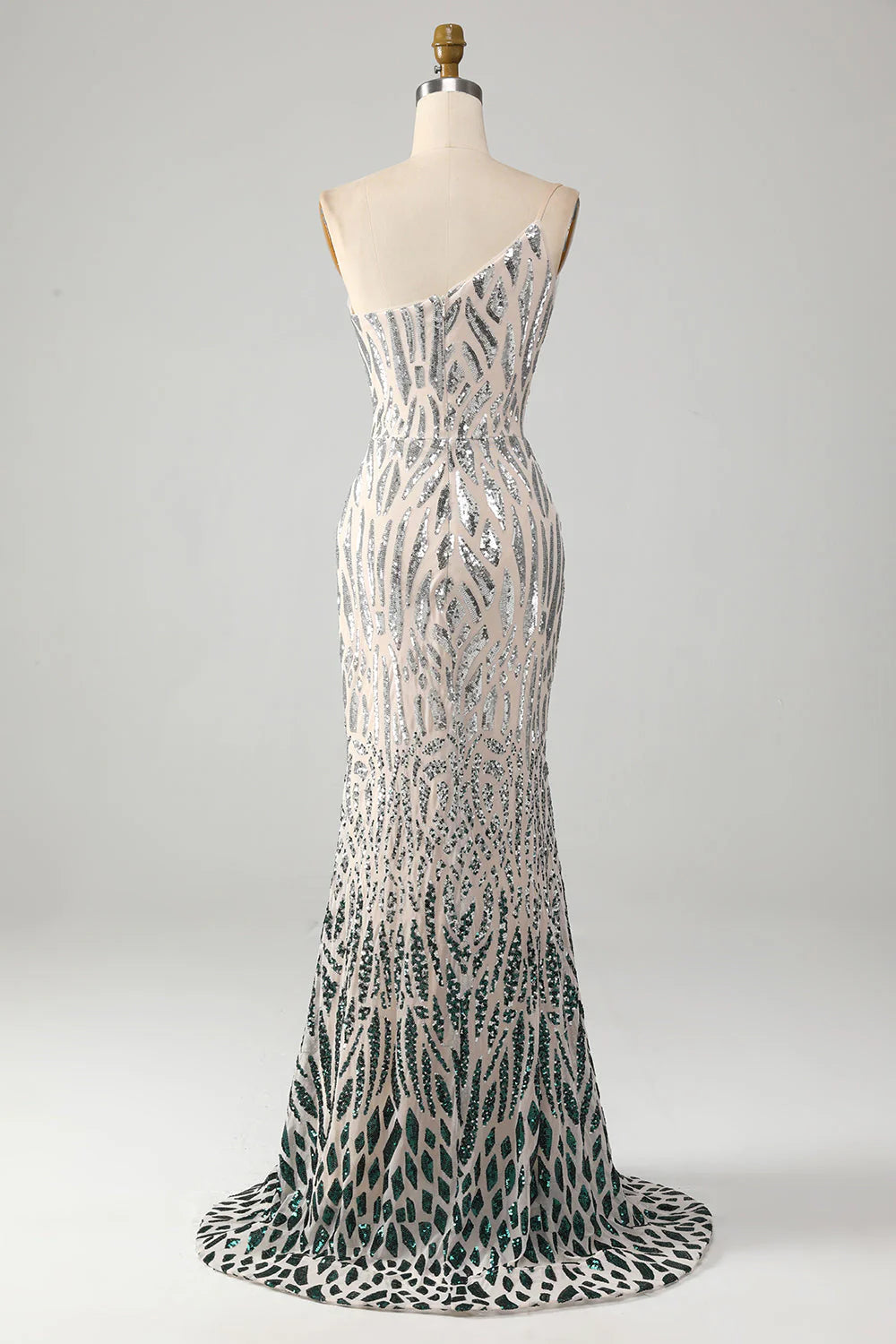 Amzcw Sparkly Dark Green Mermaid One Shoulder Sequins Long Prom Dress prom dresses with long sleeves