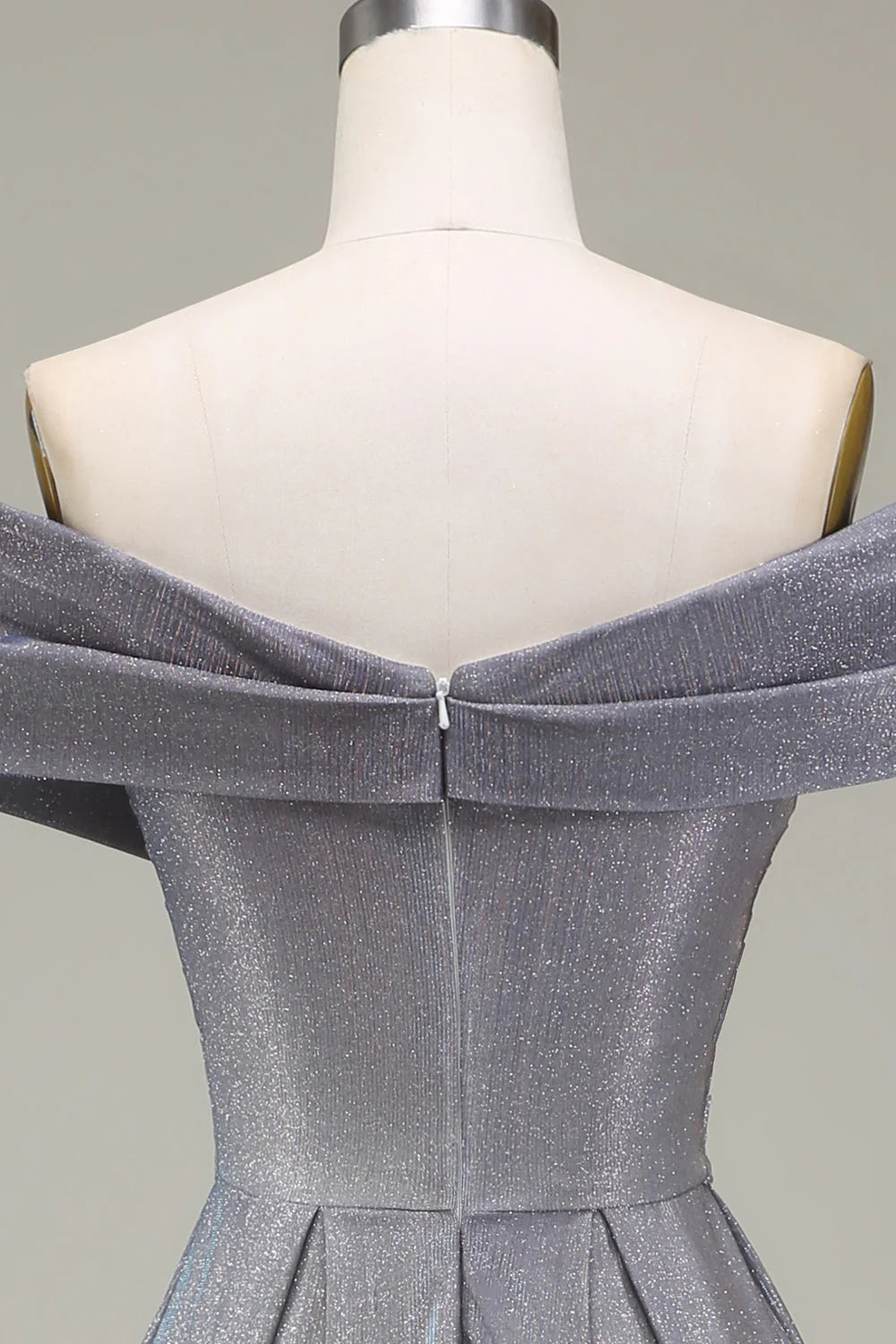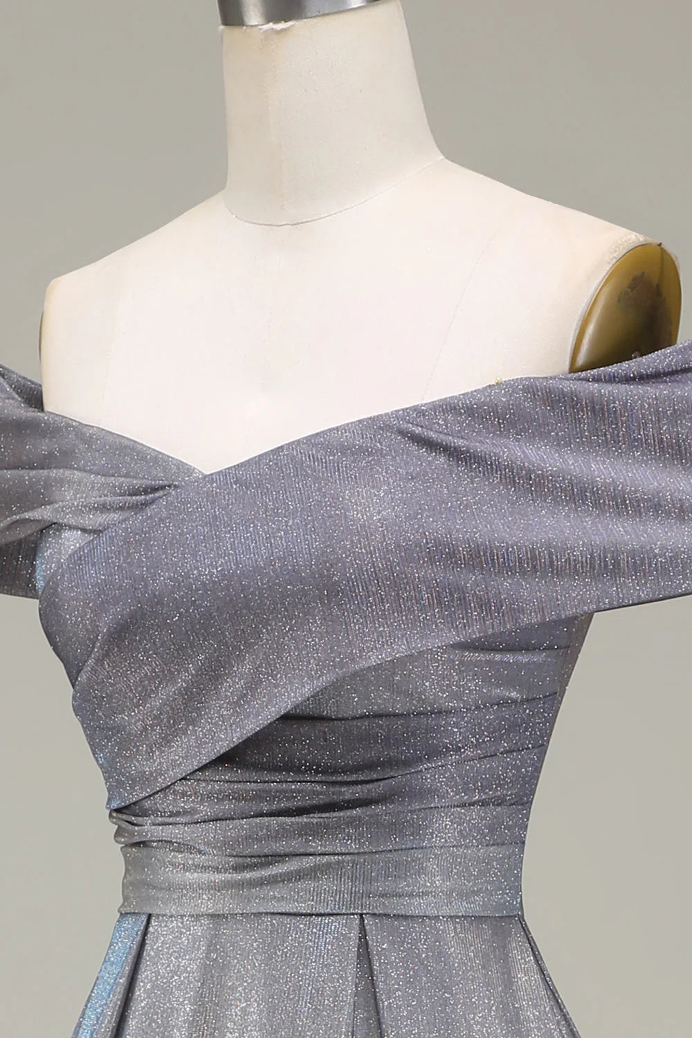 Amzcw Sparkly Gradient Metallic A-Line Off the Shoulder Pleated Princess Prom Dress prom clothing