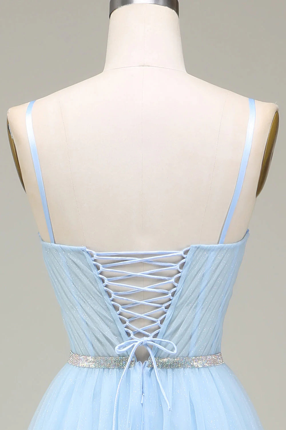 Amzcw Sparkly Light Blue A-Line Tulle Long Prom Dress With Appliques prom dresses with long sleeves
