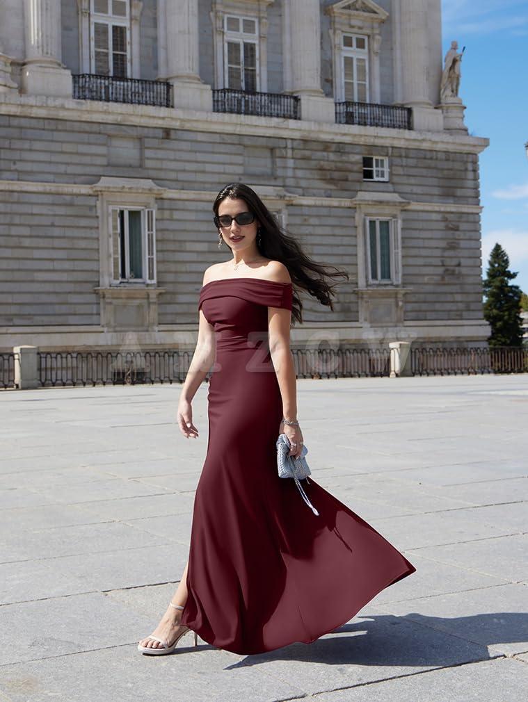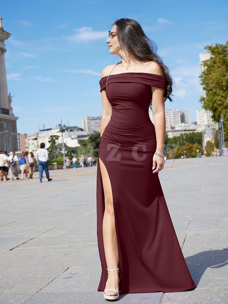 Amzcw Women's Elegant Bodycon Off Shoulder Sleeveless High Split Ruched Long Formal Evening Dress dresses evening wear