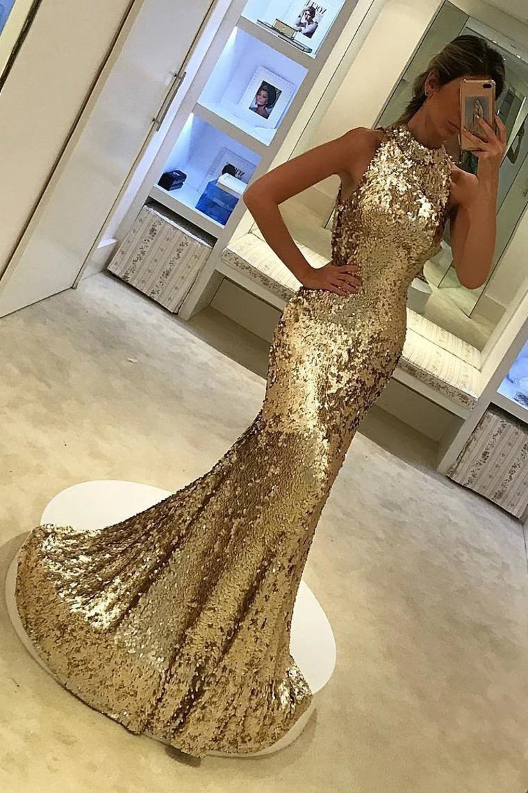 Arrival High Neck Sequins Mermaid/Trumpet Prom Dresses Sweep/Brush Train