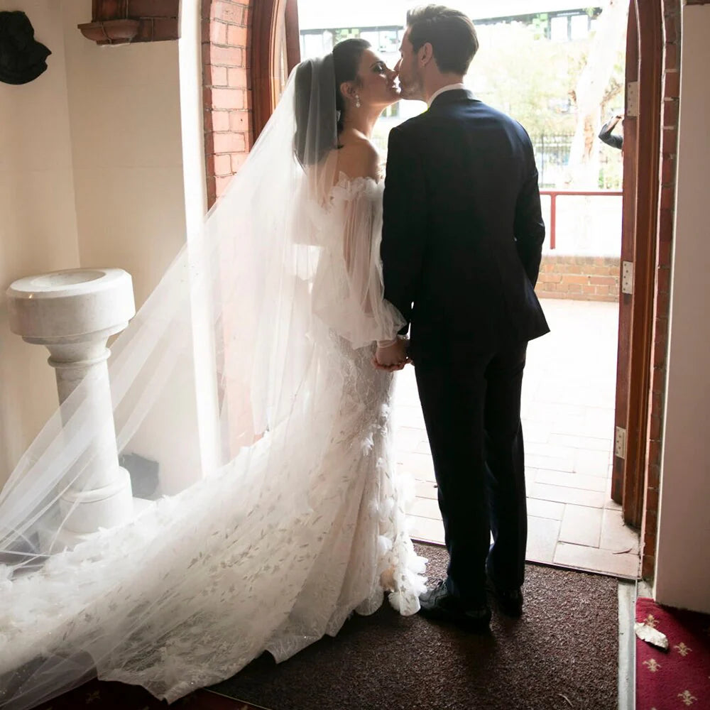Luxury Mermaid Off Shoulder Sequin 3D Flowers Long Puff Sleeve Wedding Dresses