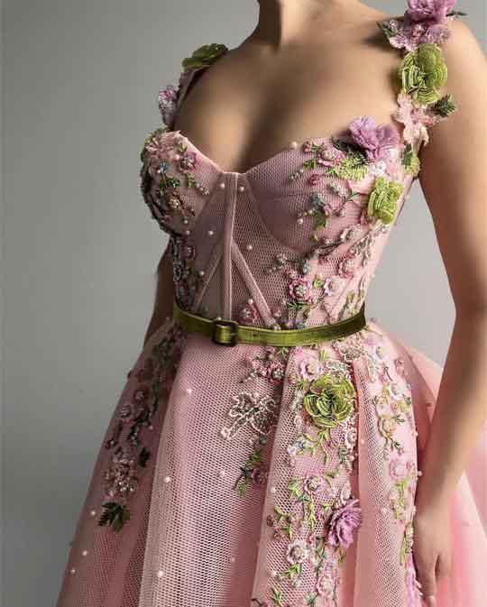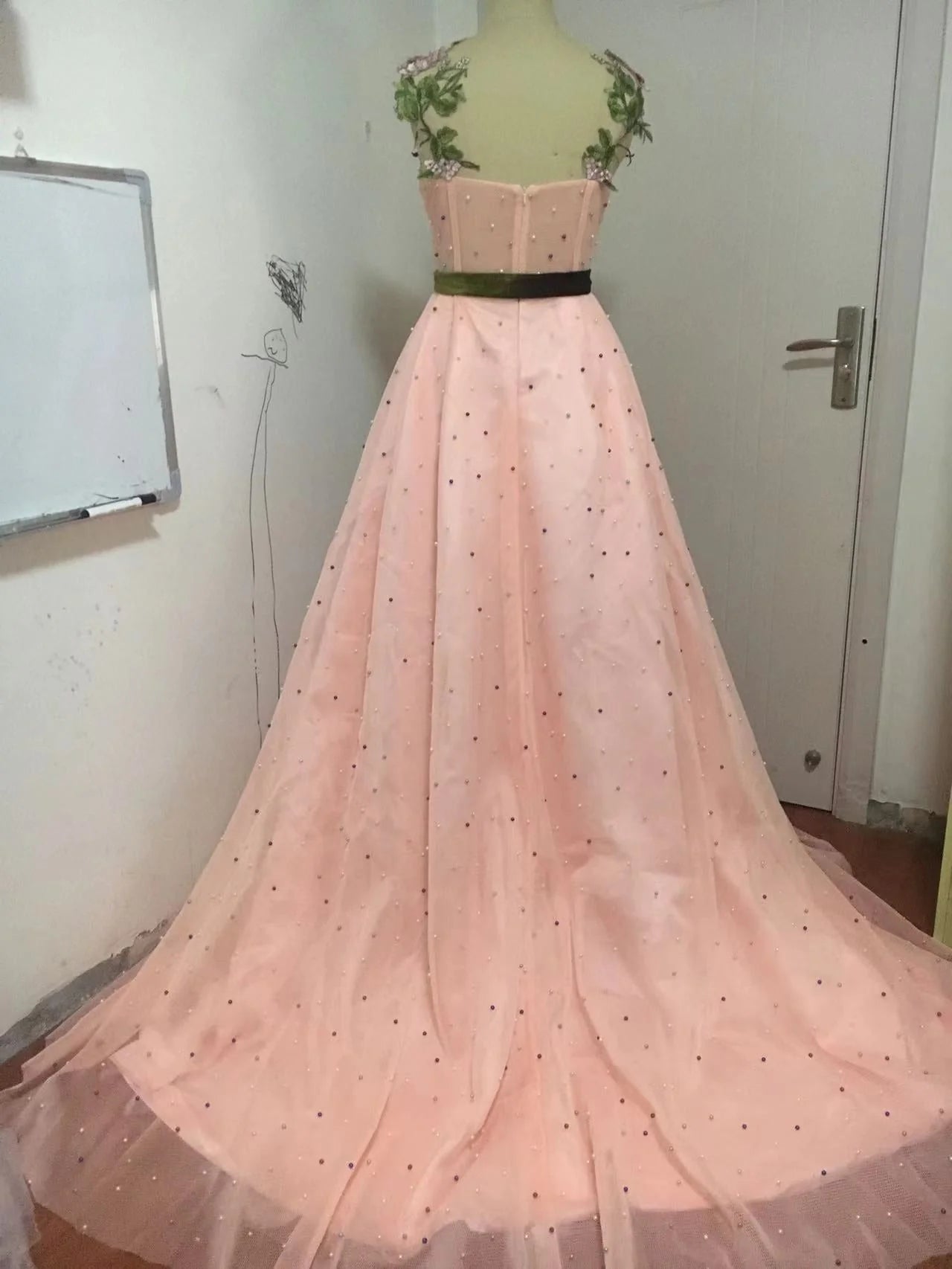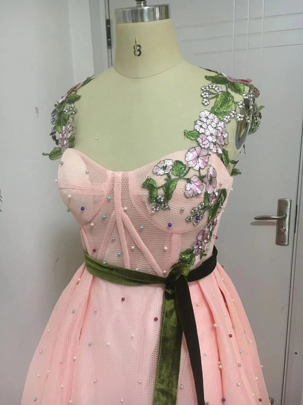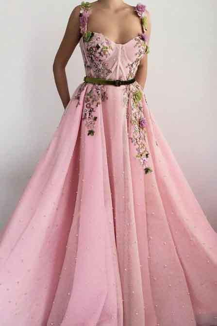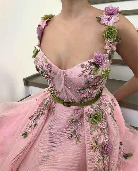 Unique Sweetheart Spaghetti Straps Prom Dresses with Flowers Pockets